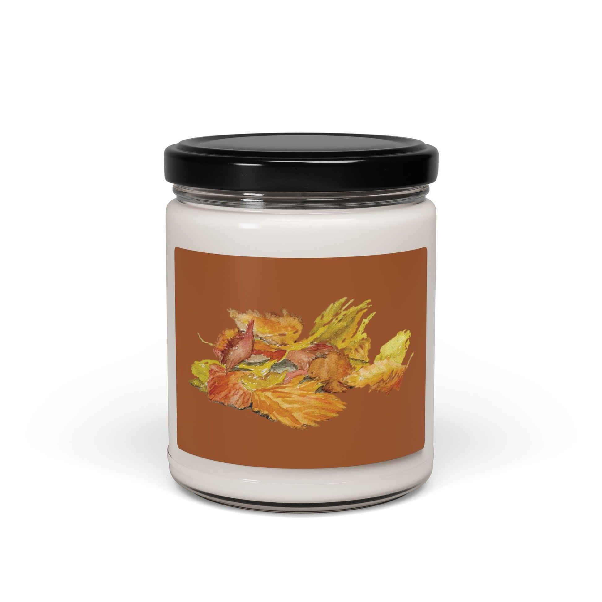 The delightful scent and warm glow from this eco-friendly soy candle decorated with Kyle's charming watercolor painting of colorful fallen leaves will certainly put you in the autumn mood. Bring a warm ambiance to those cooler evenings as you snuggle under a cozy blanket. This candle would be a fantastic gift for any fall occasion, birthday, or holiday.