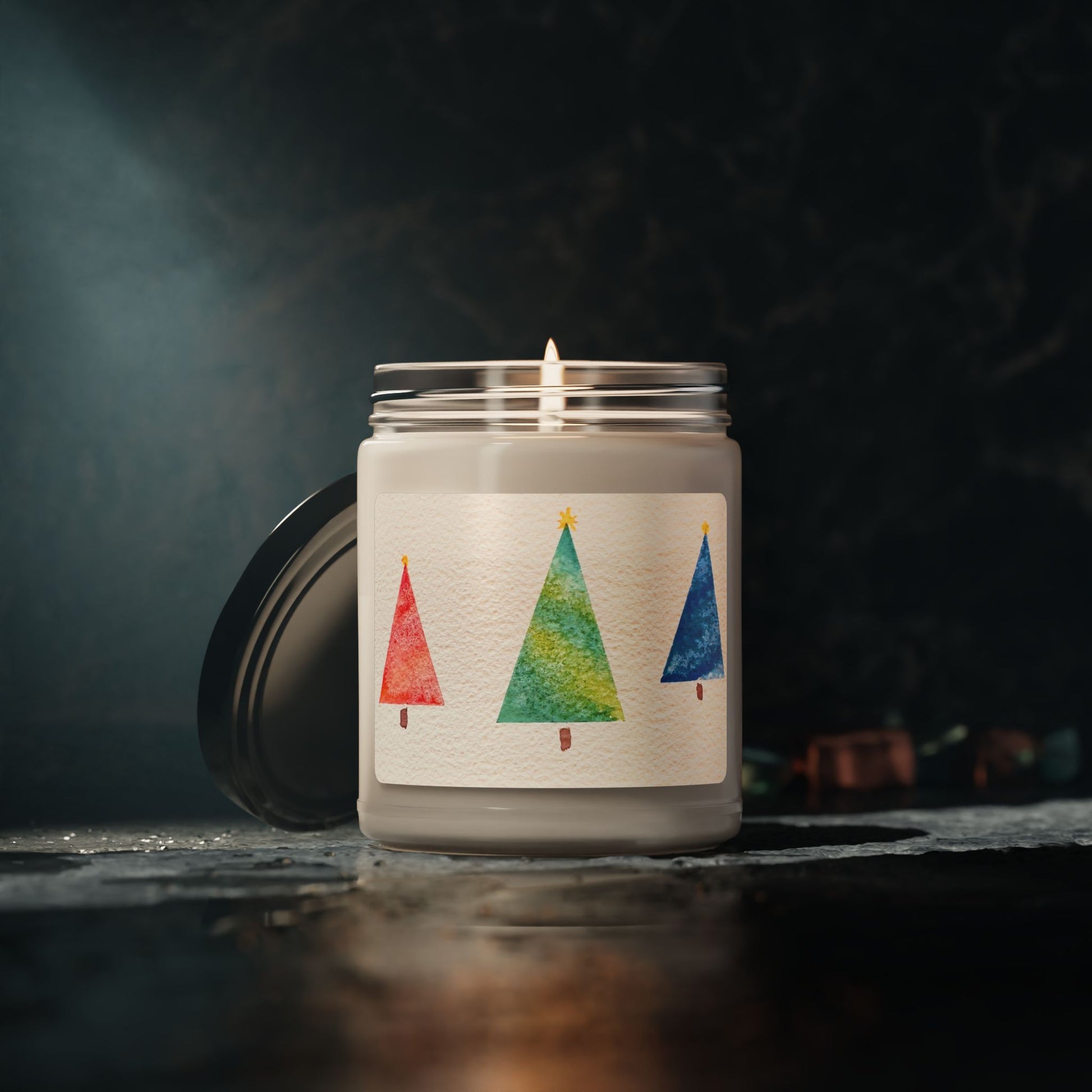 Eco-Friendly Soy Candle (9 oz.), Featuring Happy Holiday Trees. Multiple Scents Available