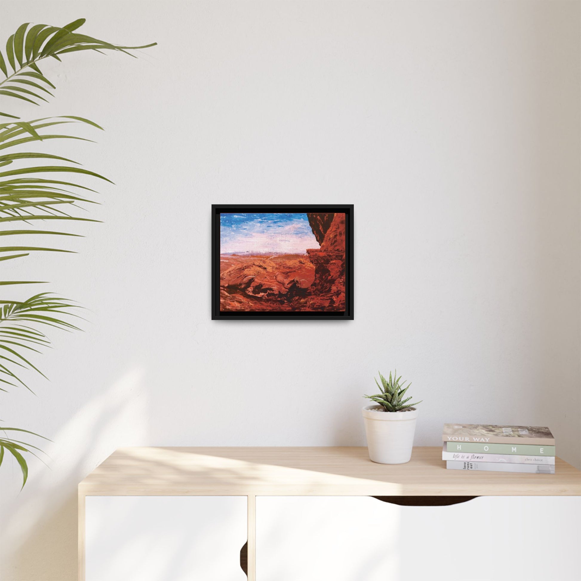 Inspired by the incredible beauty of Red Rocks State Park in Sedona, AZ, Kyle returned home from his hiking trip and immediately captured this breathtaking view from the heights of Bell Rock. The surrounding red rock formations evoke a sense of peacefulness and serenity. Bring a bit of nature into your home with this lovely framed canvas!