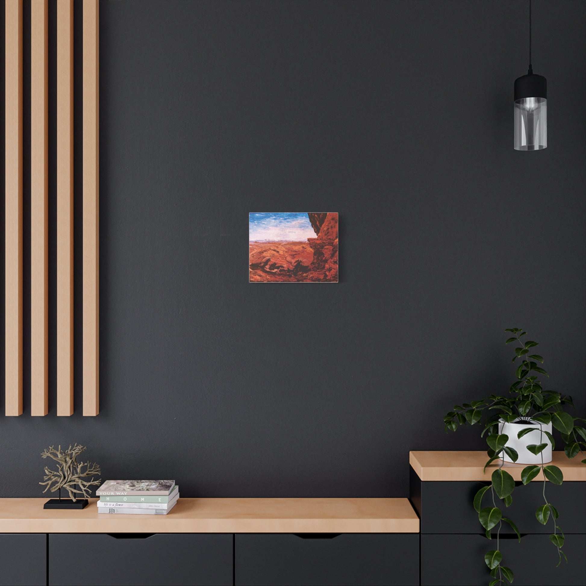 Inspired by the incredible beauty of Red Rocks State Park in Sedona, AZ, Kyle returned home from his hiking trip and immediately captured this breathtaking view from the heights of Bell Rock. The surrounding red rock formations evoke a sense of peacefulness and serenity. Bring a bit of nature into your home with this lovely framed canvas!