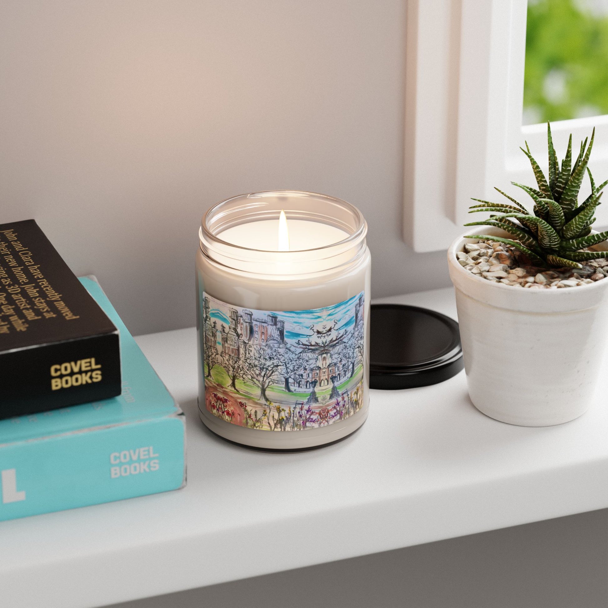 Eco-Friendly Soy Candle (9 oz.), Featuring Whimsical Watercolor of the Louvre Museum. Multiple Scents Available.