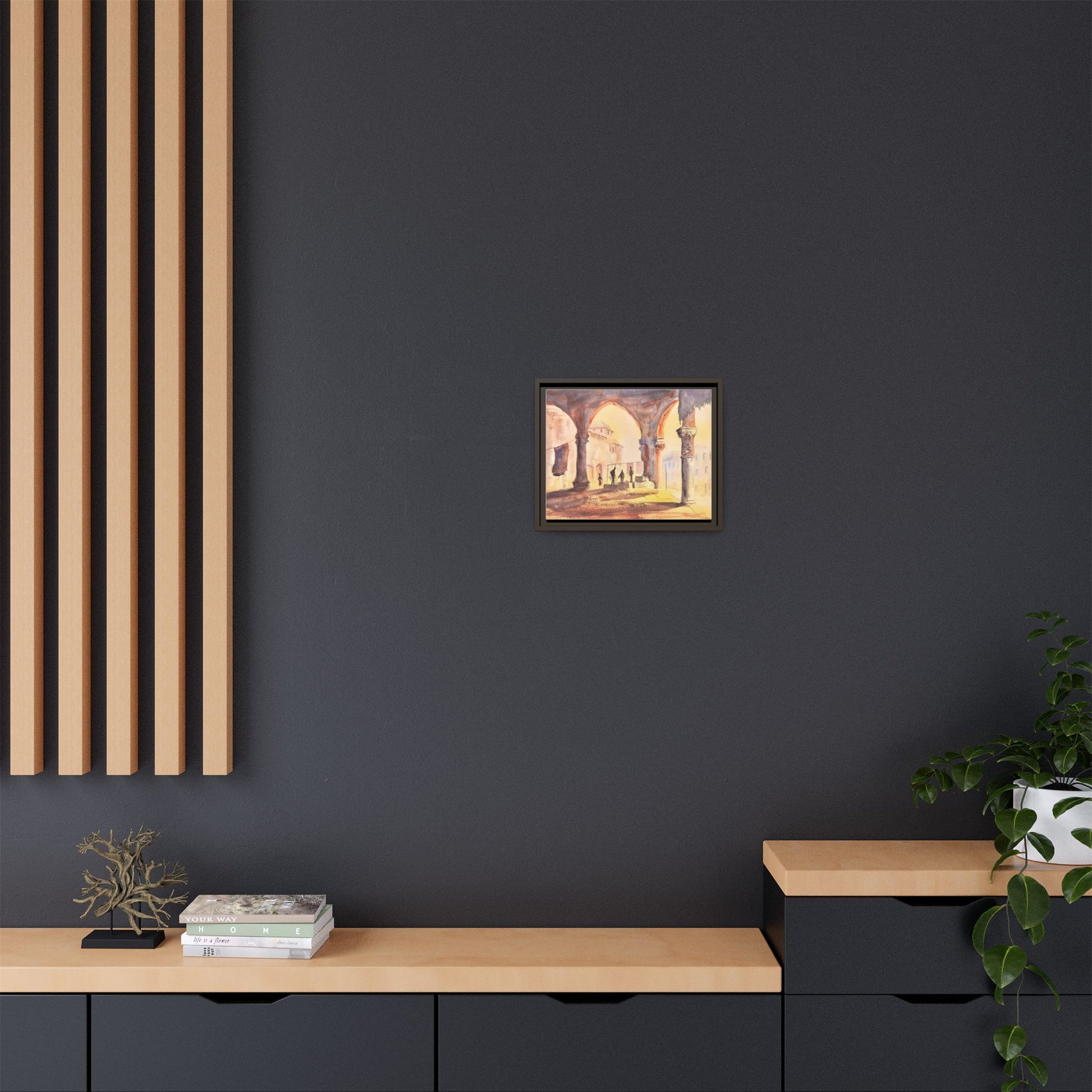 Enhance any interior space with beautiful art framed in pinewood. Printed on cotton-polyester canvas with a special proprietary coating to ensure long-lasting, vibrant colors and eye-catching detail. Made with sustainably sourced materials (Forest Stewardship Council certified), these frames are an eco-friendly choice. Choose between multiple sizes, and between 2 colors that match your surroundings. The sawtooth hanging hardware is already attached.