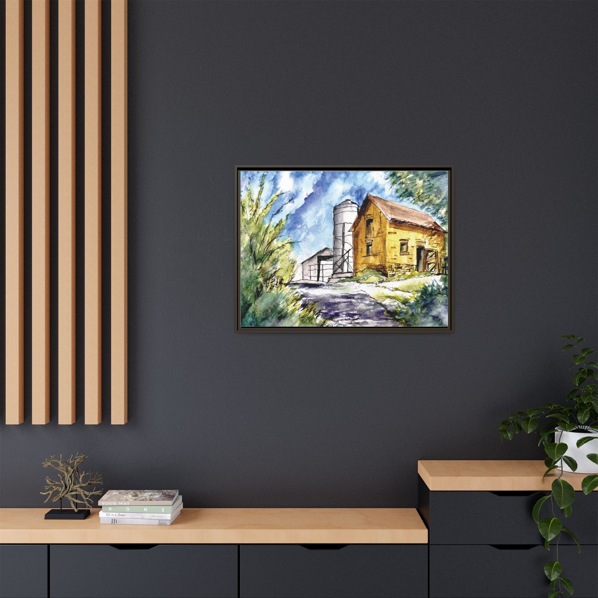 Enhance any interior space with beautiful art framed in pinewood. Printed on cotton-polyester canvas with a special proprietary coating to ensure long-lasting, vibrant colors and eye-catching detail. Made with sustainably sourced materials (Forest Stewardship Council certified), these frames are an eco-friendly choice. Choose between multiple sizes, and between 2 colors that match your surroundings. The sawtooth hanging hardware is already attached.